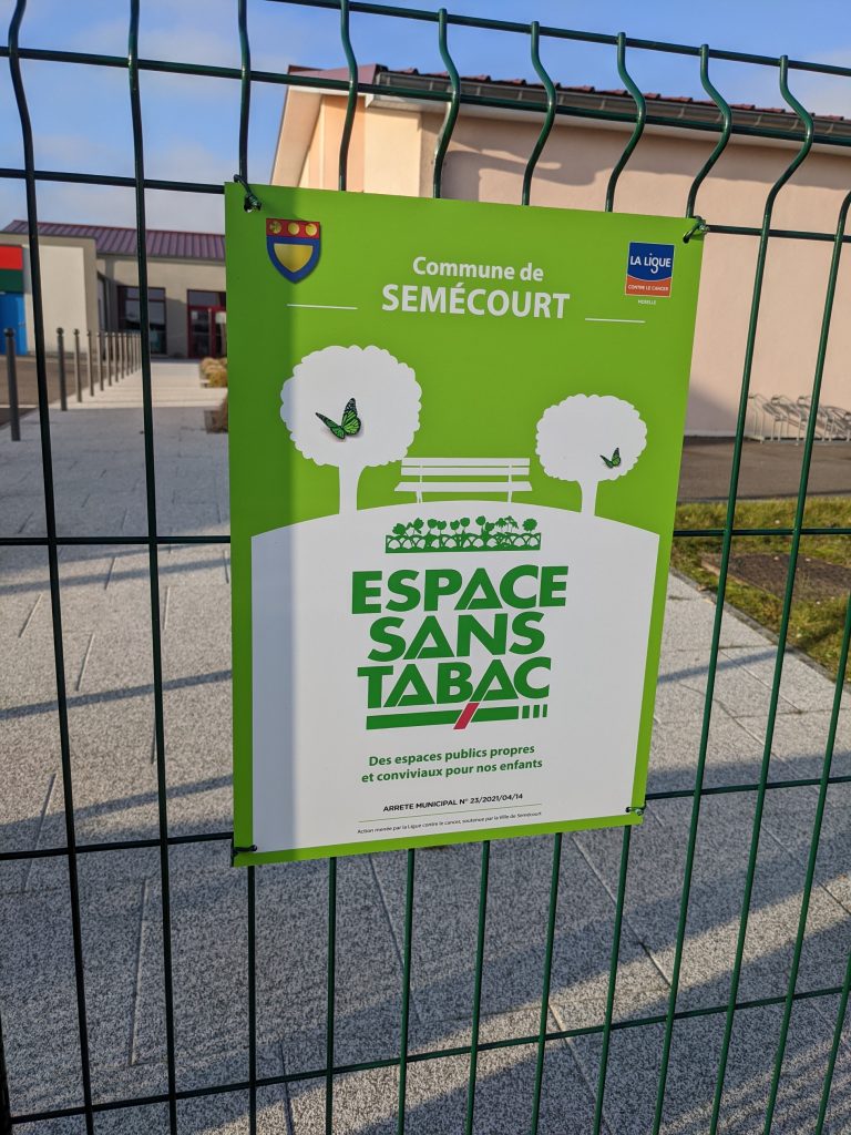 Afin de protéger les habitants et les enfants contre le tabagisme passif, des espaces sans tabac ont été créés devant les écoles, dans les aires de jeux et devant la maison des associations. Merci à la ligue contre le cancer pour ses recommandations et son soutien financier.